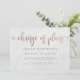 Weiße Marmor- und Rose-Gold-Script-Änderung von Pl Einladung