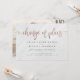 Yikes! Unvorhergesehene Umstände sind schwer zu planen, aber mit diesen Hochzeitskarten können Sie leicht gelassen Ihre Lieben wissen! Mit weißem Marmorboden. Die Worte "Änderung der Pläne" erscheinen oben in einer Imitat-Rose Gold-Folie Skript mit süßen Wirbel. Auf der Rückseite befindet sich eine Fotovorlage, die Sie durch Ihre eigenen ersetzen können. Klicken Sie auf "Personalisieren Sie diese Vorlage" und fügen Sie Ihre eigenen Daten hinzu!