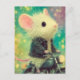 Weiße Maus auf einem Motorrad Postkarte