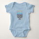 Wie kann man die erste Hanukah des Babys besser feiern als in diesem niedlichen, hellblauen Babybodyanzug mit einer kokalvoll beleuchteten Menorah auf der Vorderseite. Happy Hanukkah, Baby!