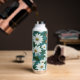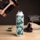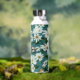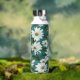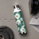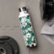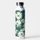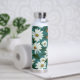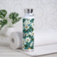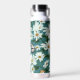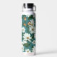 Aquarellfarbener Garten und Schmetterlinge auf aquamarinem Hintergrund.
