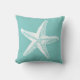Ein einfacher großer Mod Starfish im Weiß auf einem Chic Tan und einem Türkisakzent pillow.