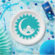 Silhouette in Weiß einer Moschee in einem Halbmond mit einem dekorativen Rahmen. Der Hintergrund ist aquamarin-blau, kann aber beliebig farblich angepasst werden. Perfekt für den Monat Ramadan.