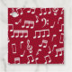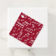 Weiße Musiknoten auf Geschenketiketten mit rotem Hintergrund
