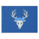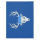 Dieses Tischtuch ist dunkelblau mit einem mythisch-weißen Hirschkopf, der drei hellblaue Rose mit großen weißen Antlers trägt.