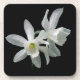 Dieser elegante Untersetzer kennzeichnet zwei reizende reine weiße Narzissen auf einem schwarzen Hintergrund.
