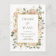 Diese wunderschöne, blumengeschmückte Hochzeit verändert das Datum der Postkarte mit einem eleganten, goldgelben rechteckigen Rahmen, umgeben von schönen rustikalen Aquarellfarben in neutralen und blütigen Farbtönen, sowie goldenen und grünen Blätter. Der Hintergrund der Postkarte ist weiß. Die Rückseite ist mit einem Blumenmuster dekoriert und bietet Platz für eine zusätzliche Nachricht. Eine wunderbare Möglichkeit, Freunde und Familie lassen, wissen, dass Ihre Hochzeit abgesagt, verschoben oder auf ein neues Datum verschoben wurde.