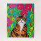 Weiße, orangefarbene Katze mit rosa Blume Puzzle