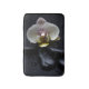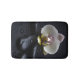 Weiße Orchidee auf schwarzen Steinen Badematte