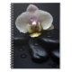 Weiße Orchidee auf schwarzen Steinen Notizblock