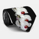 Drastisches Weiß mit roten Orchideenblüten schmückt diese Krawatte im sich wiederholenden Muster. Drastisch und erstaunlich stilvoll.