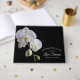 Persönlich gestalten Sie die eleganten Weißen Orchideen auf Black Celebration of Life Gastbuch Teilnehmer an Ihrem Gedenkmal oder Beerdigung zu unterschreiben. Passen Sie es an mit dem Namen Ihres verstorbenen Lieben, Geburtstag und Todestag. Dieses elegante Gästebuch mit Blumen zeigt ein Blumenfoto einer weißen orchitischen Blume, die auf dem Stamm mit schwarzem Hintergrund blüht.