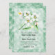 Eine Hochzeitseinladung mit weißen Orchideen auf grünem Hintergrund.
