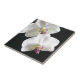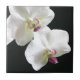 Empfindliche weiße Orchideenblüten auf einem schwarzen Hintergrund geben eine elegante Erklärung von der Schönheit ab.