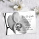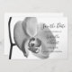 Set den Ton für Ihre kommenden Nuptials mit der eleganten White Orchid Wedding Save the Date Announcement. Diese klassische individuelle botanische Ehe behielt die Datum Ankündigung zeigt eine Schwarz-Weiß-nahe auf Blütenbild einer weißen Phalaenopsis orchid Blume Blüte auf dem Stiel.