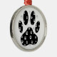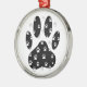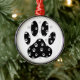 Niedliche weiße Pfoten auf schwarzem Pfotendruck.