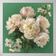 Weiße Peonies mit Frühlingsblumen auf Grün Poster