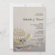 Weiße Perlen, Diamantring und blaue Spitzen-Hochze Einladung