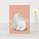Niedliche Perserkatze mit weißgetünchten Blume auf weißen Punkten und orangefarbenem Hintergrund zum allgemeinen Geburtstag.