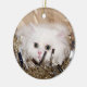 Die schöne, weiße persische Kätzchenkatze spielt mit der Weihnachtsgärtnerei und hat einen schlechten Ausdruck niedlich Katzenliebhaber Keramik Weihnachtsfeiertage Ornament