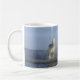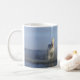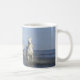 Weiße Pferde am Strand mit Kaffee-Tasse im Ozean Kaffeetasse