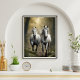 Weiße Pferde, die im Waldposter laufen Poster