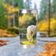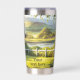 Thermalwäscher mit einem Bild eines weißen Pferdes in einer hügeligen Landschaft. Mit optionalem benutzerdefinierten Text. Wunderschön für einen Pferdefreund.