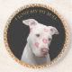 Weiße Pitbulle mit roten Küssen über sein Gesicht. Getränkeuntersetzer
