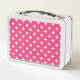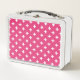 Weiße Polka-Kreuze auf Fuchsia Metall Brotdose