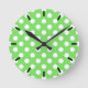 Weiße Polka Punkte auf Apfelgrün Runde Wanduhr