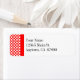 Eine benutzerdefinierte Rücksendeadresse mit einfachen weißen Polka-Punkten auf rot mit einfachen Blockbuchstaben. Klicken Sie auf Anpassen, um Schriftart, Hintergrundfarben, Etikettengröße und vieles mehr zu ändern, und rettete Sie Ihr Design für später.