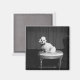 Weiße Poodle sitzend auf Hocker B&W Magnet