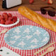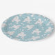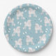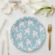 Niedliches weißes Poodles-Muster mit Bows und Hearts auf zartem Swirl-Muster und weich blauen Hintergrundpapier-Tellern.