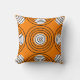 Weiße Punkte, schwarze repetitive Kreise auf orangefarbenem Hintergrund.