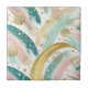 Eine traumhafte und farbenfrohe abstrakte Keramik-Kachel mit Regenbogen-inspiriert Pinselstrichen in weichen Pastellfarben - Rosa, Minzgrün, Hellblau und Hellgelb - mit schimmernden goldenen Texturen, verstreuten Sternen und gepunkteten Details. Ideal für Fantasy-Liebhaber, traumhafte Ästhetik und fröhliche saisonale Stimmung wie Frühling, Sommer, Geburtstage oder Stolz Feiern.