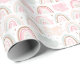 Weiße und gürlich pastellfarbene Regenbogenmuster mit Wolken und Regentropfen. Ideal für Babydusche oder Geburtstagsgeschenk-Verpackung.