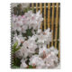 Ein persönliches, spiralgebundenes Notizbuch für Noten und Journaling, das ein Cover-Foto-Bild von rhododendron blüht, das entlang eines Bambuszaunes wächst. Ein schönes, blumengeschmücktes Design!