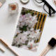 Weiße Rhododendron Blooms und Bambuszaun Blumen Notizbuch