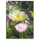 Weiße, rosa und gelbe Tulpen im Garten Klemmbrett
