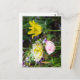 Weiße, rosa und gelbe Tulpen im Garten Postkarte