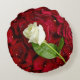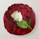 Weiße Rose auf roten Blumenblättern Rundes Kissen