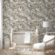 Weiße Rose, Champagnerseide und Schmetterlinge Tapete