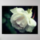 Delikate weiße Rose in Blüte mit bleibenden Regentropfen. Blumenfotografie von Susan.