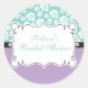 Weiße Rosen auf Aqua & Lila Brautparty Runder Aufkleber