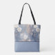 Dieses wunderschöne weiße Rosen auf einem blauen Hintergrund mit Ölgemälde ist perfekt für eine vollwertige Tasche mit Druckgeschirr. Das untere Drittel (ca. 10 cm) ist ein koordinierender Feststoff mit einem dünnen Streifen. Tragetaschen sind ein lustiges saisonales ästhetisches Accessoire. AI unterstützte Grafik, die mit kommerzieller Lizenz erworben wurde. Kunstwerk: DigitalCurio
