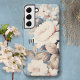 Weiße Rosen auf rustikal blauem Hintergrund mit Mo Samsung Galaxy Hülle