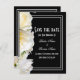 Weiße Rosen auf schwarzen Hochzeit speichern das D Ankündigungspostkarte