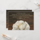 Eine Hochzeitseinladung mit einem Bild von weißen Rosen unten auf einem Hintergrund von dunkelbraunem Barnwood. Personalisieren Sie den Text mit Details zu Ihrem Anlass.