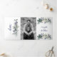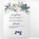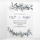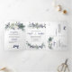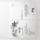Weiße Rosen, blaue Berries, Kiefernnadeln Hochzeit Dreifach Gefaltete Einladung