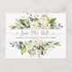 Weiße Rosen Grünpflanzen Save the Date Postkarte